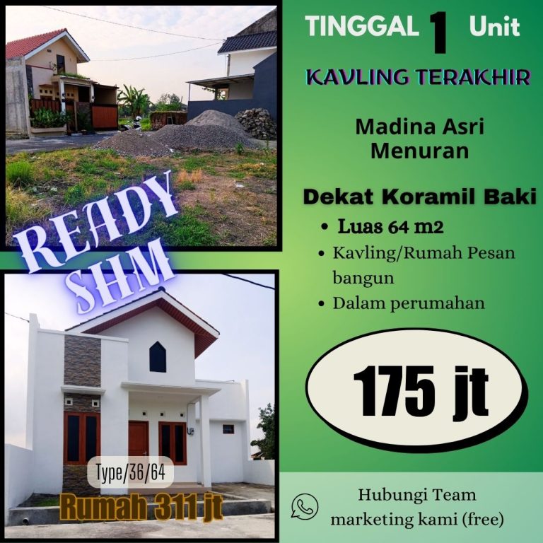 Hanya booking fee 2 jt Anda sudah mengunci unit di Madina Asri Menuran
