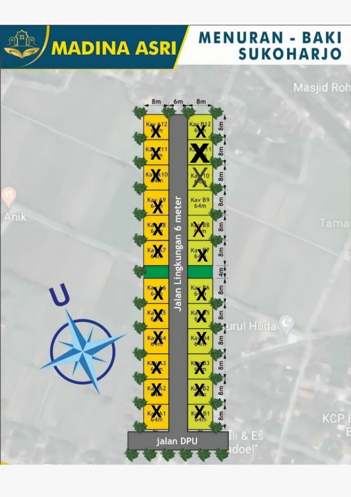Lokasi Madina Asri Menuran dekat dengan Desa Menuran Baki dan dekat Jembatan Baki Jlan raya Solo-Baki Sukoharjo