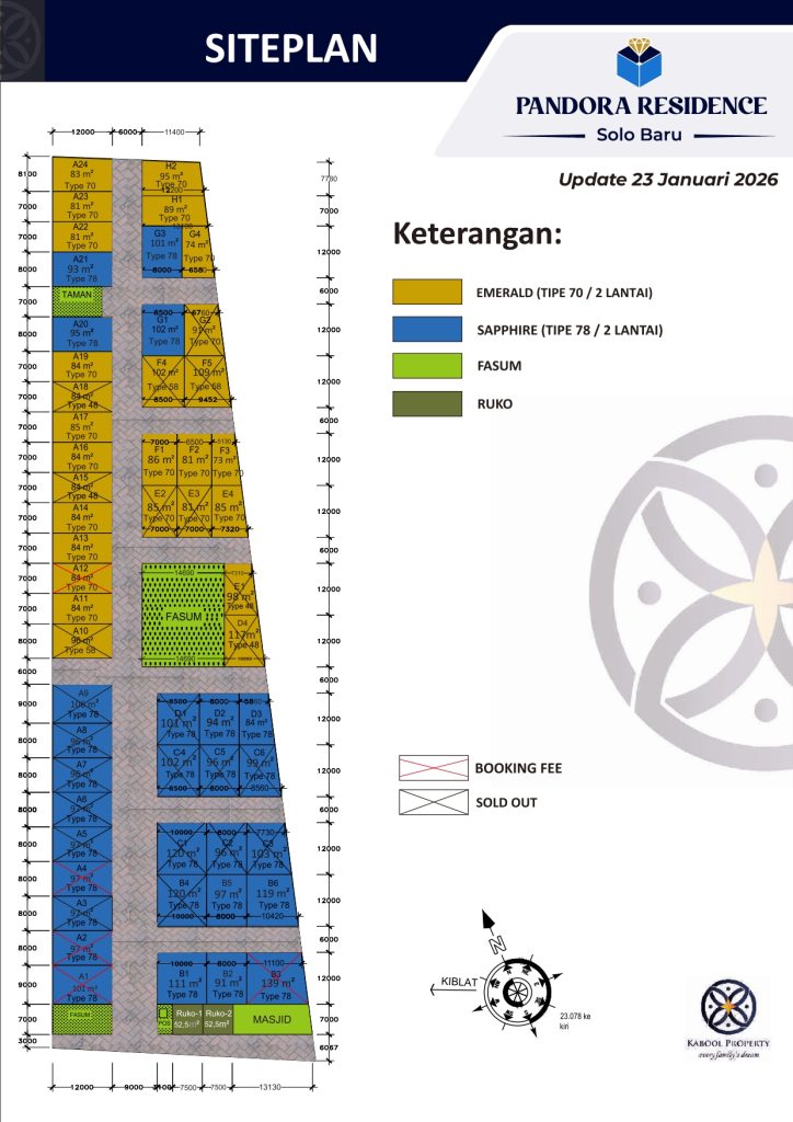 Pilihan Tipe Rumah: 1. Emerald: (type rumah 48) 2KT,1KM 2. Ruby: (Type rumah 58)2 KT dan 1 KM 3. Sapphire (2 Lantai): (type rumah 78) 3 KT dan 2 KM 4. Diamond (2 Lantai): (Type umah 107) 4 KT dan 4 Km
